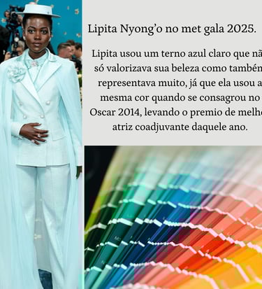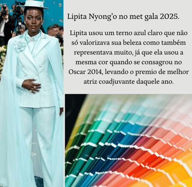 Para a nossa quarta dica, temos as cores, e elas não representam só a beleza e a harmonia no look. Estar com a cor certa pode valorizar tudo em você e também pode te representar. Eu vou citar logo a Lupita Nyong’o como um excelente exemplo: ela entregou tudo no Met Gala de 2025.