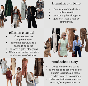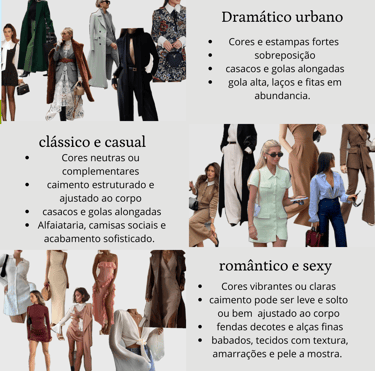 O primeiro passo para entender um pouco mais sobre seu estilo é saber mais sobre você mesma: quais peças do seu guarda-roupas, você mais usa ou gosta? Por que essas peças foram escolhidas? Observe as cores, estampas, corte, tecidos, caimento e o estilo que se repete. Nessa etapa, vocês devem observar qual dos estilos pré-definidos você mais usa.